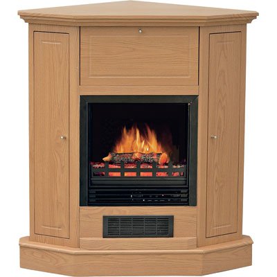Don't waste your time chopping or hauling wood just to stay warm this winter. Plug in this heater and let the electric company take care of the busy work for you. Fits snug in the corner of your room and features three shelves for extra storage. BTU Output: 5,115, Volts: 120, Amps: 12, Watts: 1,500, Blower Included: Yes, Heat Settings: Two, Thermostat Included: Yes, Power Cord (ft.): 7 1/2, Mantel Color: Medium oak, Flame Dimmer Switch: Yes, Log Set Included: Yes, Dimensions L x W x H (in.): 28 X 9 1/2 X 39 Read more...